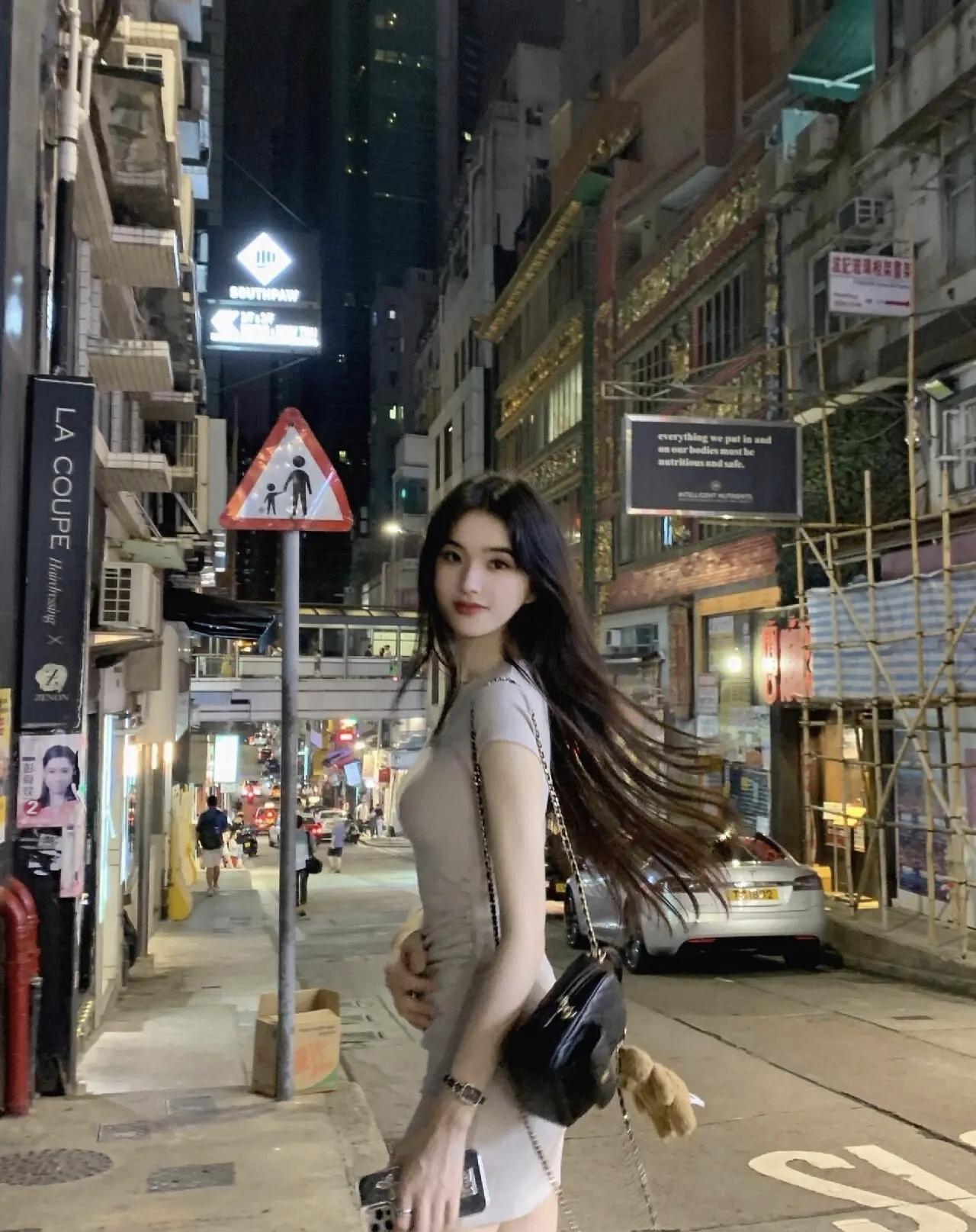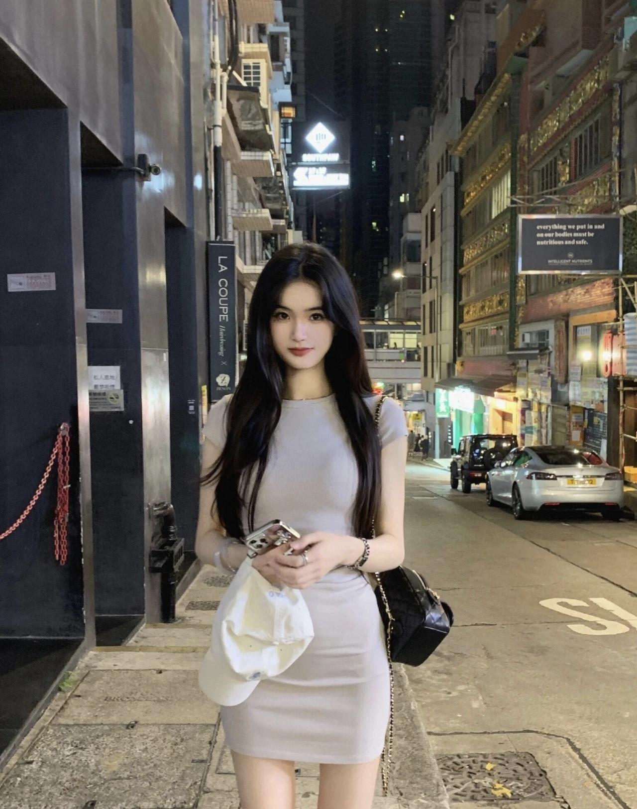 香港街头的晚风里,浅灰裙装配棒球帽,在霓虹与烟火气中,邂逅松弛又时髦的夜。