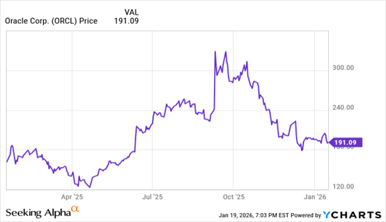 去年,甲骨文股价一度翻倍,突破300美元大关;但此后市场情绪回归理性,股价较近期高点回落约40%。