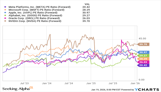 随着此次回调,甲骨文的估值已跌至大盘科技股的低位区间。