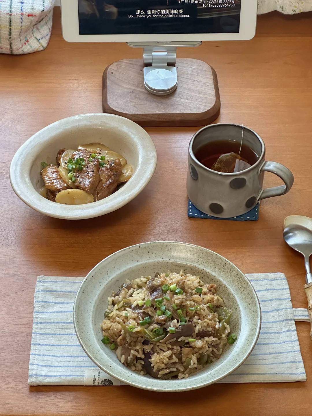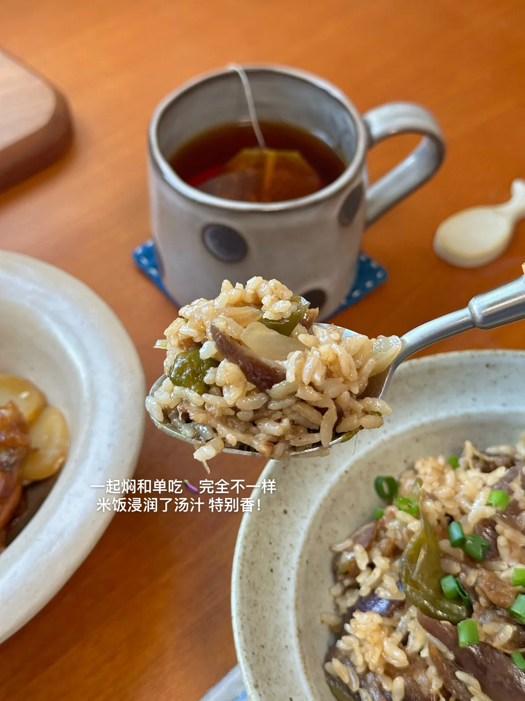 🥄今日菜单: 复刻贾冰版茄子焖饭 红烧鸡翅年糕 路易波士茶 . 详细做法步骤图往后翻~ . 超爱各种香喷喷的焖饭! 烂糊的茄子焖在米饭里真的和分开吃不一样~ 拌匀了每粒米都是油香油香的 就是这种黏黏糊糊的口感 好吃! . 鸡翅年糕要多煮一会比较入味 这个汤汁拌米饭也很好吃 .