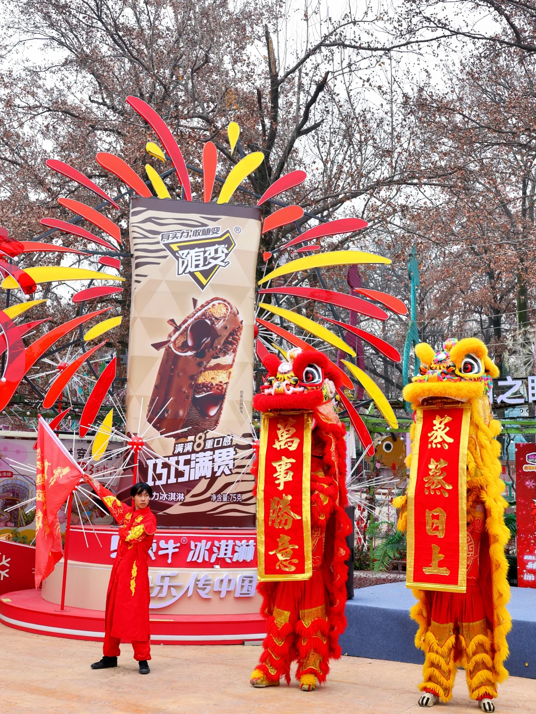现场热闹非凡,还有舞狮、击鼓🥁、舞旗的表演,过年的气息扑面而来~🧨