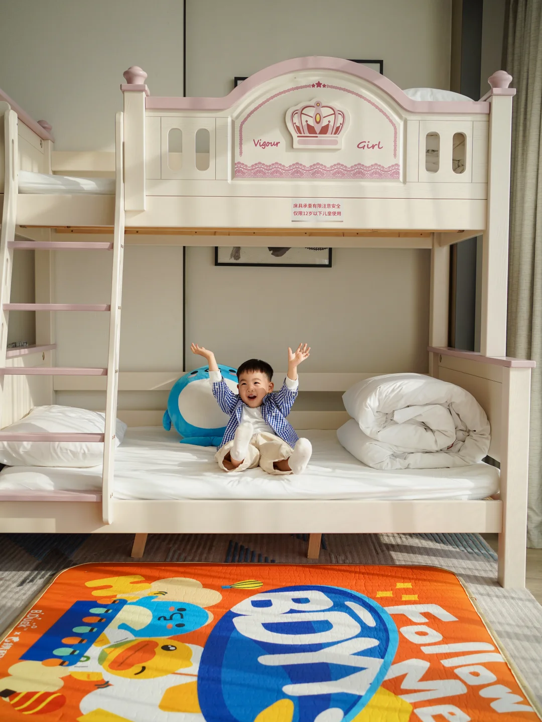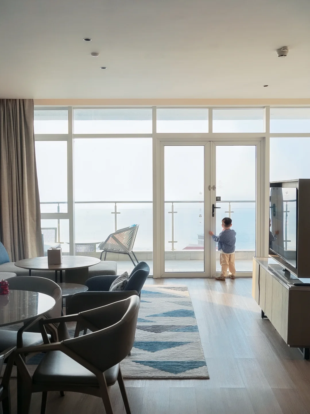 这次带父母和睿宝一起来度假,订的海景房和亲子房,房间超级大有70m²,几乎是很多酒店房间的2倍了!海景房带一个大阳台,傍晚不用挤去沙滩🏖️,躺在房间就能独占一场绝美落日🌅太满意了‼️小黄鸭主题亲子房的上下床简直成了睿宝的秘密基地!