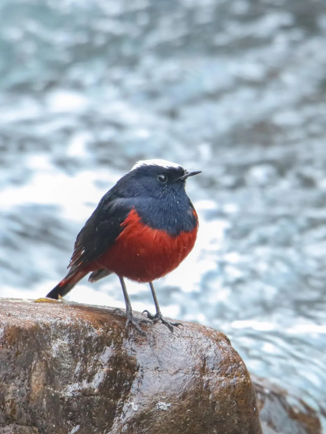 白顶溪鸲经常出现在山区溪流,河谷岸边,几乎无时无刻都翘着尾巴,因此也被观鸟人称为“溪流中的摇滚歌手”。