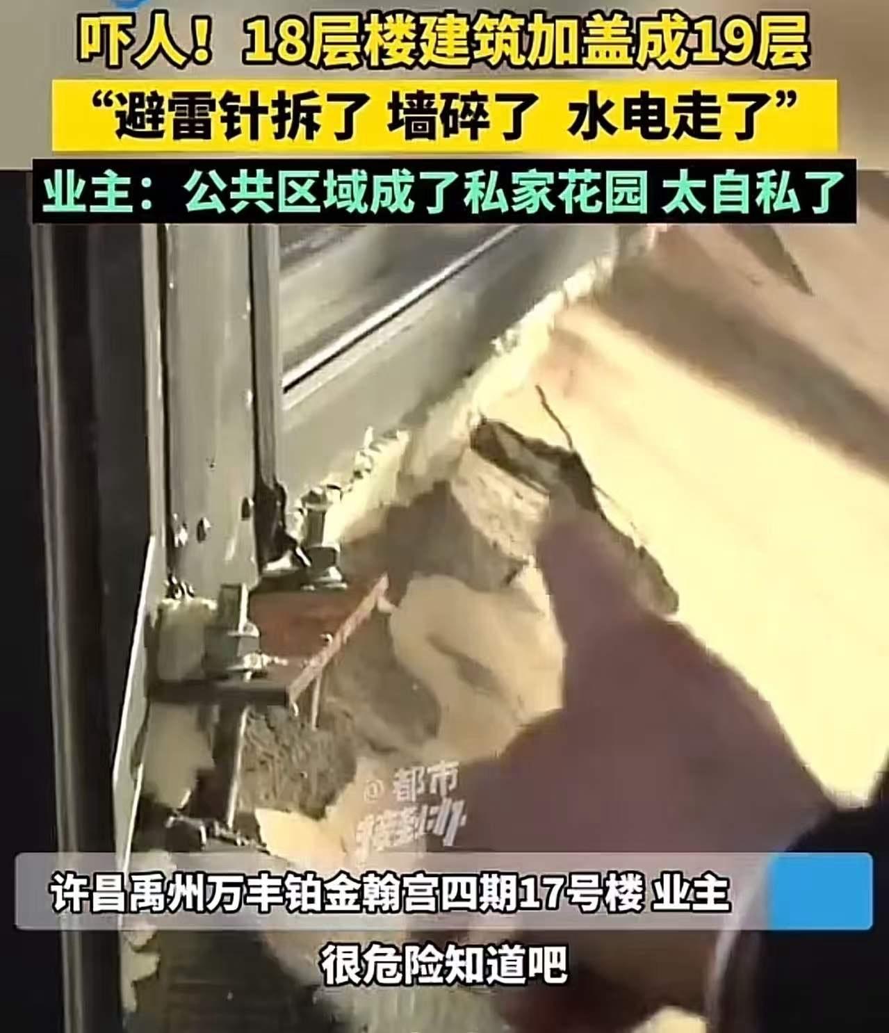 吓人!顶层业主私盖阳光房,把18层楼建筑加盖成19层!邻居:“避雷针拆了,墙体敲