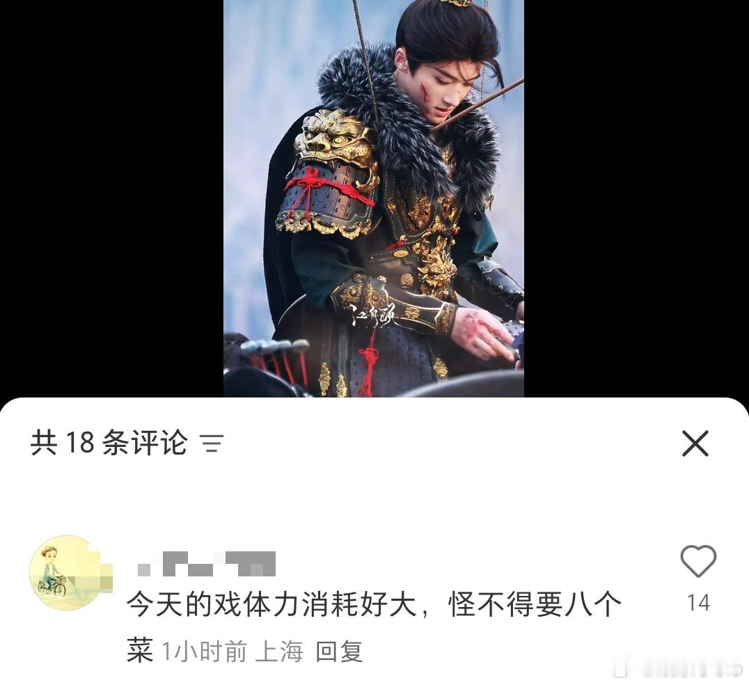 闫桉咋这么搞笑呢哈哈哈哈哈哈,拍吊威亚的打戏很费体力就给自己点了八个菜看这个效果,这八个菜是没白吃