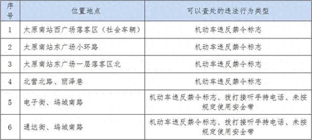 本次新增的固定式交通技术监控设备公示时间自2026年1月20日至2026年1月27日。公示期结束,太原市公安局交通管理支队将正式启用以上固定式交通技术监控设备,对设置地点相关路口、路段机动车违反禁令标志、拨打接听手持电话、未按规定使用安全带等交通违法行为进行摄录取证及查处。望广大交通参与者及道路沿线商户、居民支持配合。请自觉遵守交通安全法律、法规,注意行车安全,珍爱生命,平安出行。