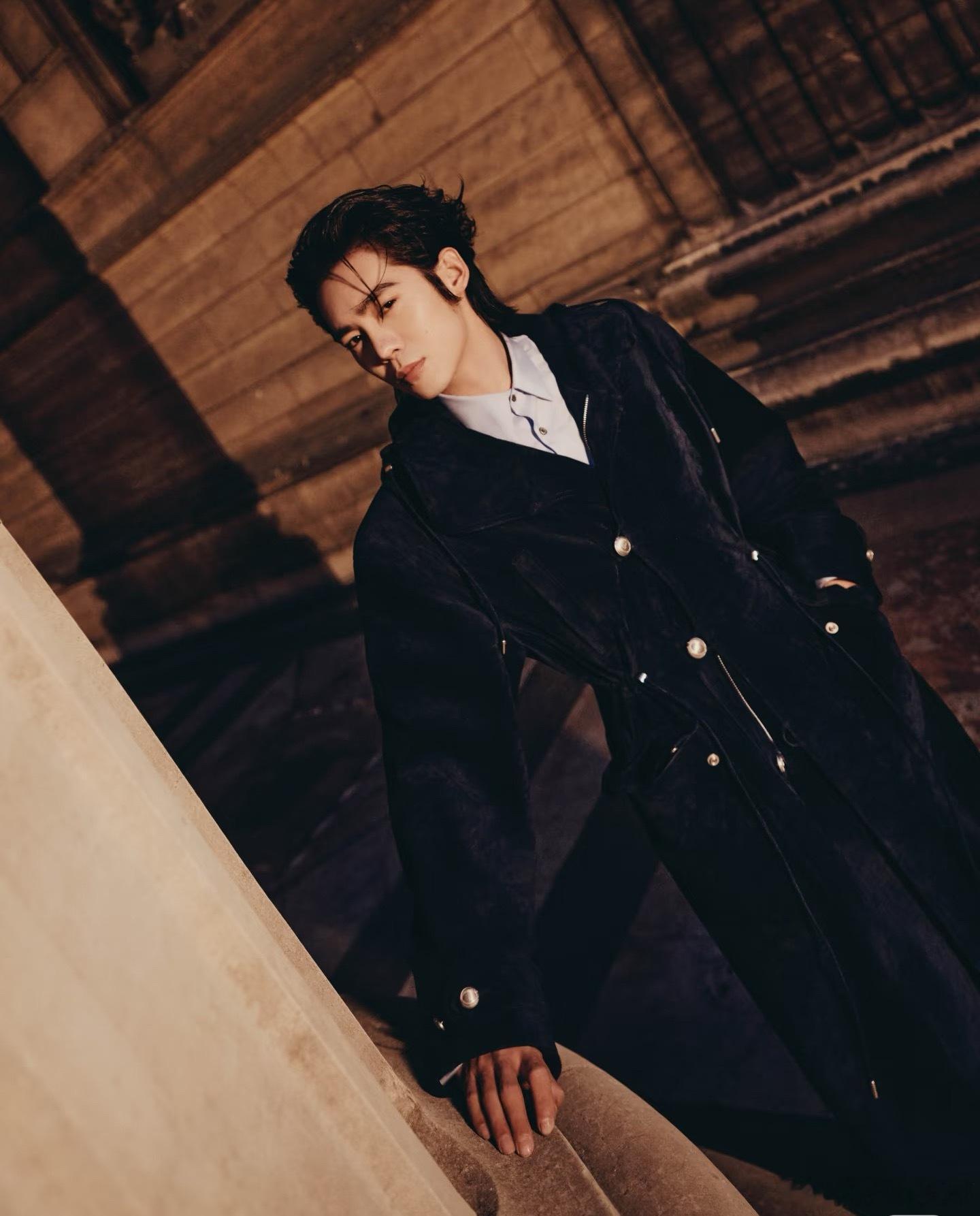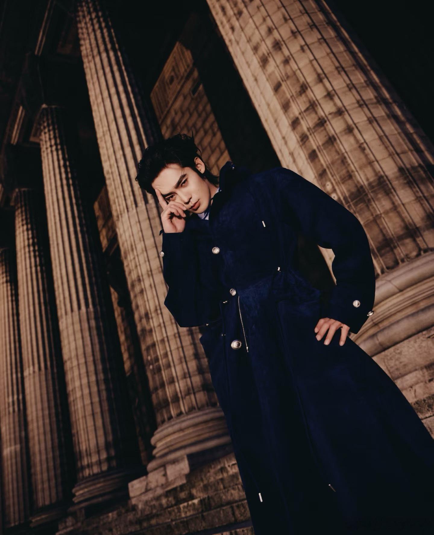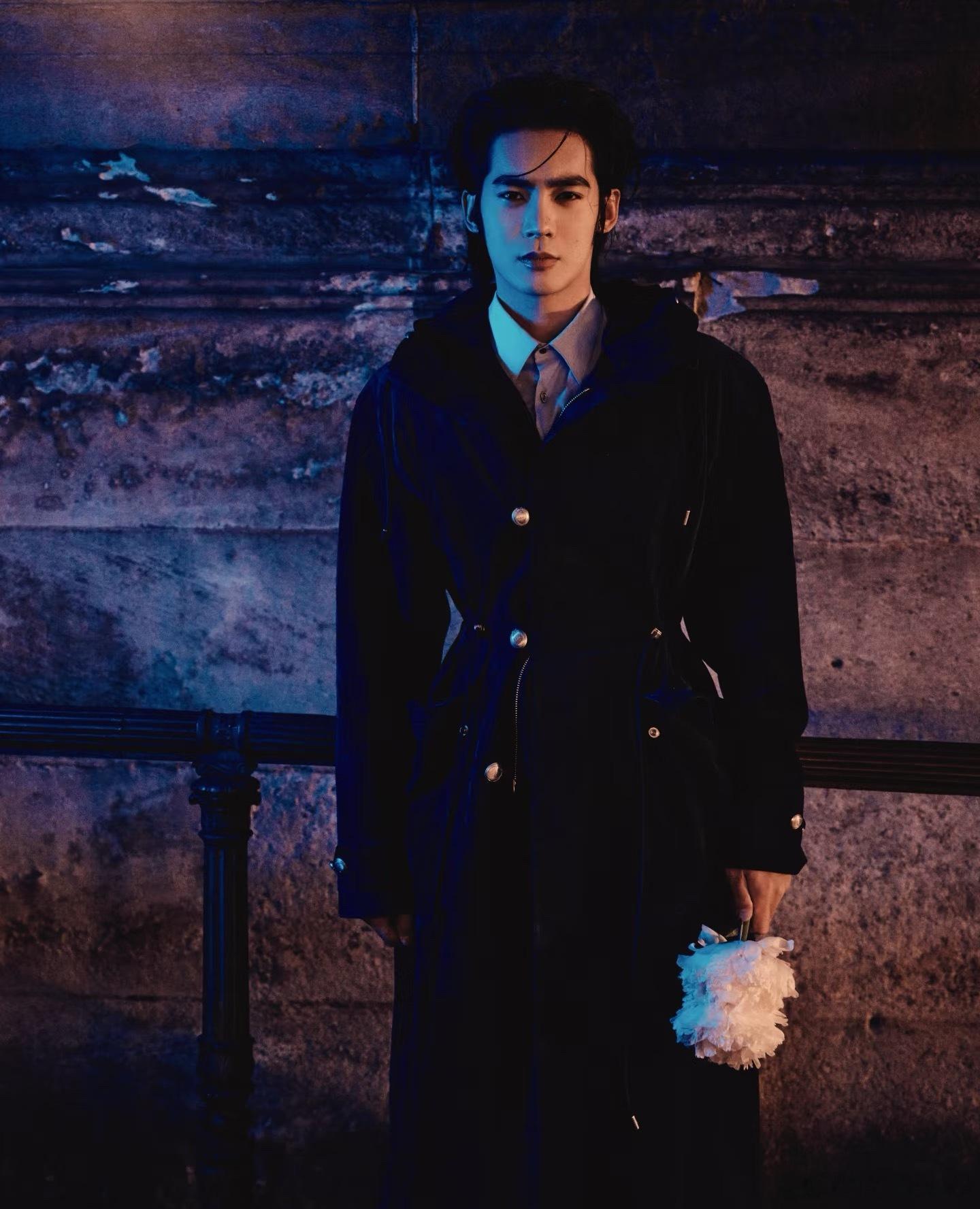 于适 法国文学走出的男神 巴黎夜幕之下,于适身着蓝色束腰大衣,手捧花束,宛如矜贵典雅的绅士。此前,他以一身清爽丹宁造型抵达巴黎,完美诠释“少年气的成熟”。
