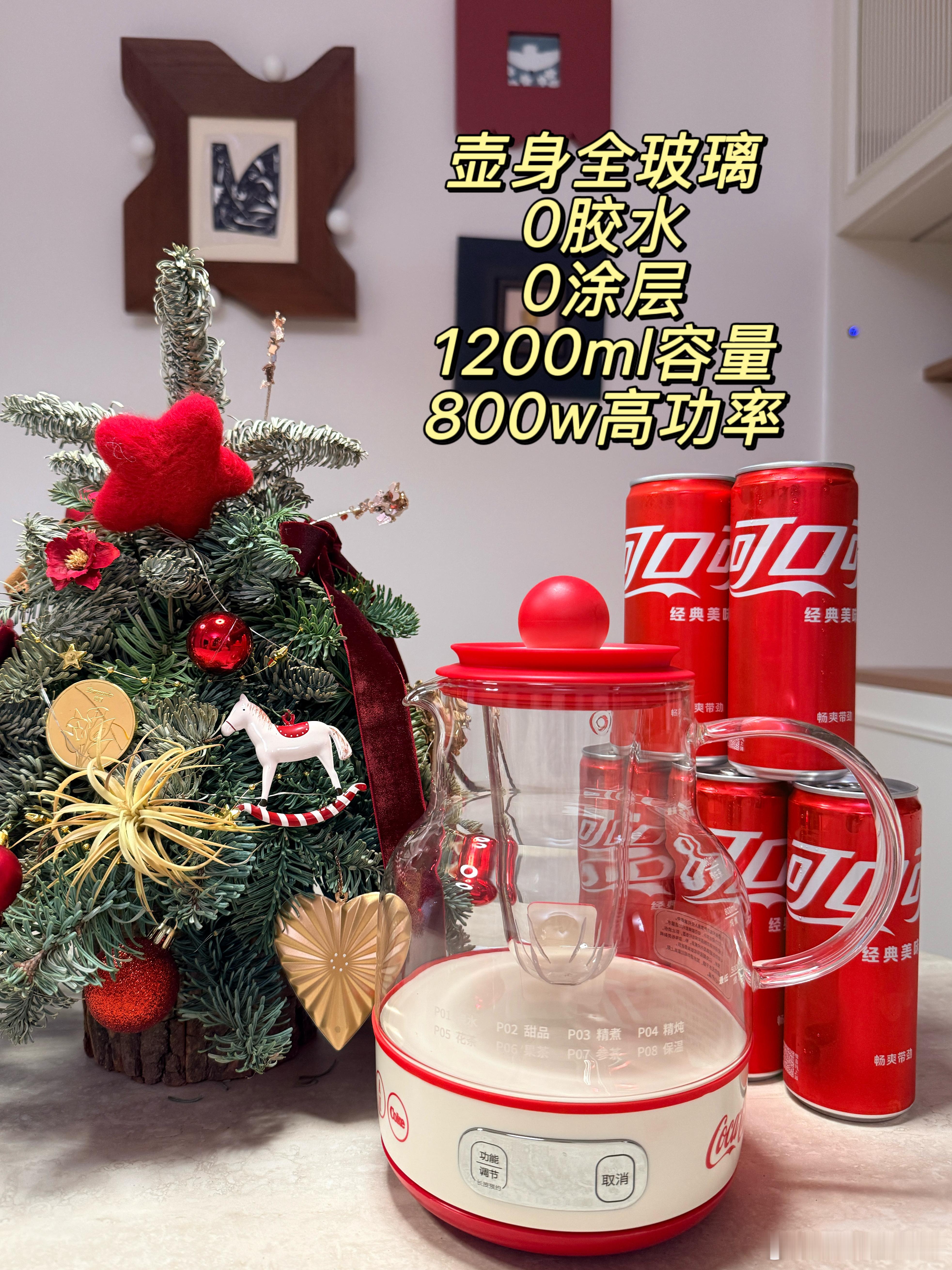 新年快乐宝宝们~这个冬天真的好冷啊,最近我都在家里用这个可口可乐养生壶煮饮品喝,真的好幸福!让我爱上喝水喝茶~壶身是奶瓶级玻璃材质可以放心使用,煮东西和清洗都很方便并且不会残留味道,1200ml的大容量招待朋友家人很足够,800w的大功率,沸腾的快不说,还是低分贝轻音煮。8大功能有烧水、甜品、精煮、精炖、花茶、果茶、参茶和保温,还能24h预约,想喝就有热饮相伴。这款壶内置ntc智能控温芯片,水温水位双重感知,智能防溢和自动断电,用着更安心。这个养生壶的颜值真的太适合新年了!无论是自己用还是过年走亲戚送礼物都很合适,红色的包装和壶身配色放在餐桌上很喜庆。而且它真的超实用,可以自己在家煮茶煮饮品喝,可以家人团聚的时候喝,过年打🀄把它放在旁边用,或者放在自己的工位上每天煮点花茶喝。宝宝们每天记得多喝水!大家不妨试试这款可口可乐的养生壶,不仅颜值能打,而且品质也更可靠,每天喝一壶水,滋养身心,新的一年也要好好爱自己❤️记得看平有大鹅U绘!养生饮品果茶茶壶