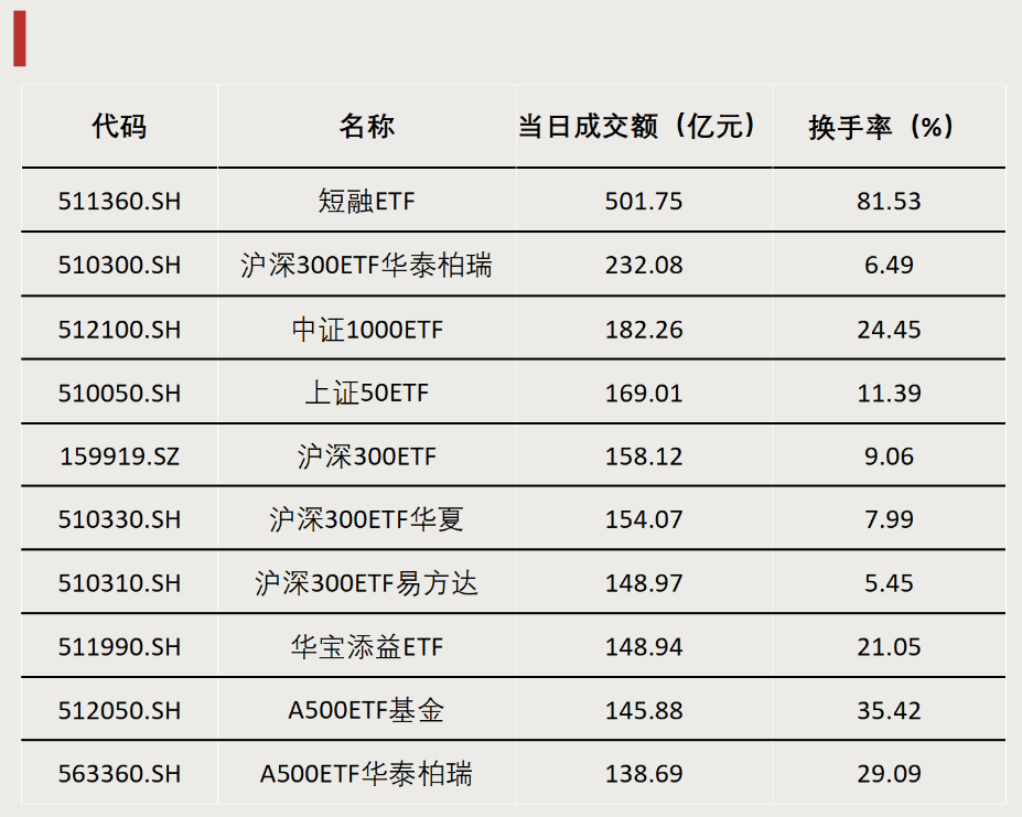 今日,宽基ETF交投继续活跃,沪深300ETF华泰柏瑞(510300)成交额达232.08亿元,多只宽基ETF成交额超100亿元。