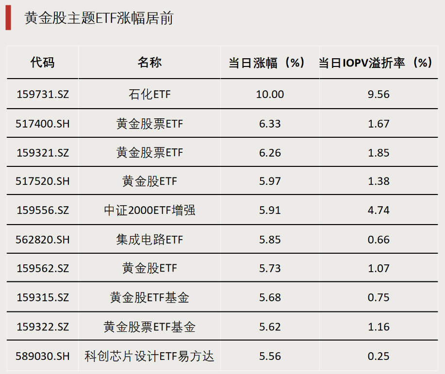 ETF方面,石化ETF(159731)尾盘突然拉升,瞬间涨停,以1.10元价格成交9920手,疑似出现了乌龙指。