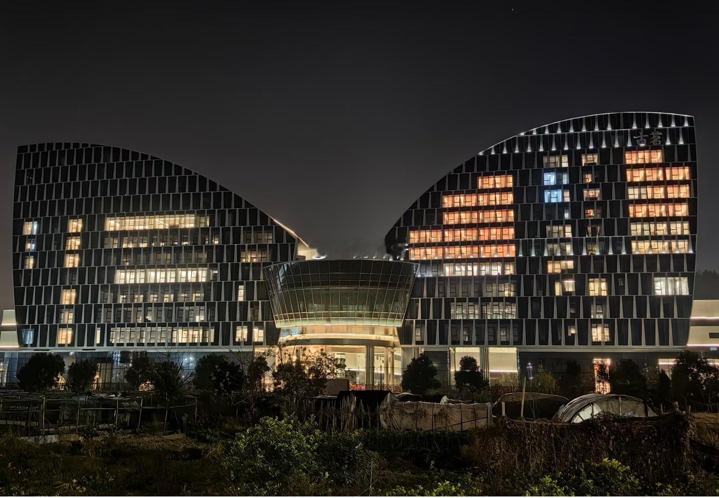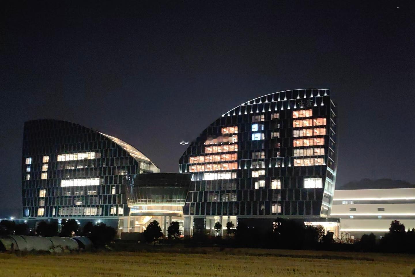 网友实拍:晚上9点依然灯火通明的,位于台州大溪镇的【古茗】总部。{很拼!生意好才这么忙吧!今天【古茗】的市值已创出上市来的新高}
