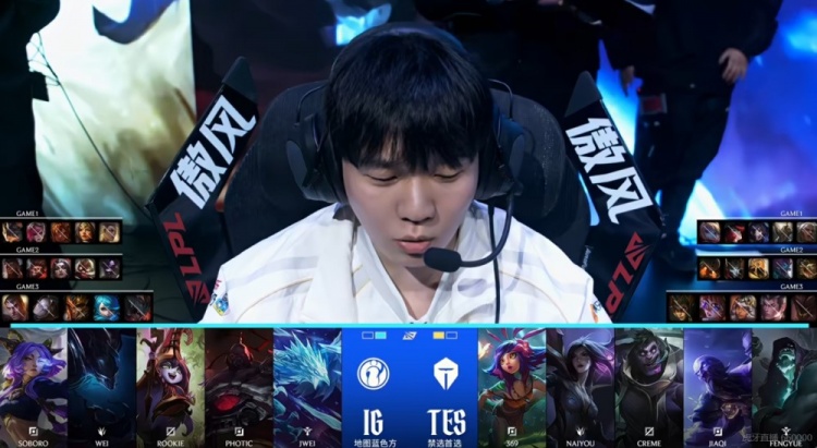 iG:上单Soboro、打野Wei、中单Rookie、下路Photic、辅助Jwei