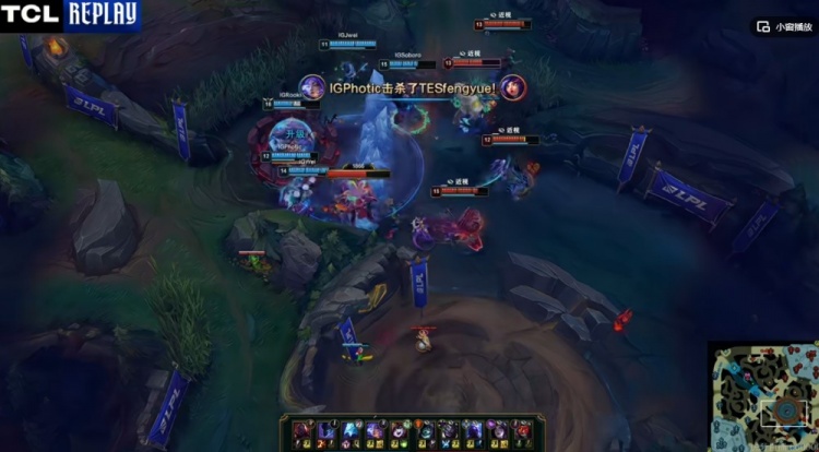 [13:20]下路Photic芸阿娜+Jwei璐璐线杀盲目开大的Fengyue妮蔻,回头Creme瑞兹开车支援但是有璐璐大加持的Photic芸阿娜还反手击杀掉了JiaQi卡莎!这波0换2打完iG领先2K多了!