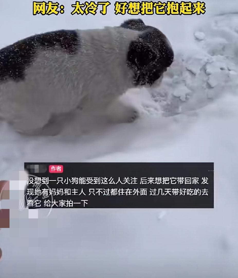 太心疼了!近日,黑龙江一女孩走在路上,遇到一只被冻的瑟瑟发抖,呜呜叫的小奶狗。女孩以为这是有人家扔出来的小奶狗,于是就打算把小奶狗抱回家里养。 结果走近才发现,小奶狗是有主人、有妈妈的,只不过主人将小奶狗和他妈妈都放在外面养,连个窝都没有。 看着小奶狗冻得瑟瑟发抖的样子,女孩心疼坏了!既然小奶狗有主人女孩,就不能带它回家,但外面天寒地冻,十分可怜。 女孩伸出双手招呼着小奶狗,小奶狗一边颤抖,一边扭动着小小的身体,踩着咯吱咯吱的积雪向女孩走过来。 很可爱,也很可怜!毕竟黑龙江的天气,即便它有一身的皮毛,也是会冷的呀!希望它的主人看到后,能给小奶狗和狗妈妈做一个窝,哪怕只有一个纸箱子和一件破旧的棉衣,也足以让狗妈妈和小奶狗度过这个寒冷的冬天!狗 心疼
