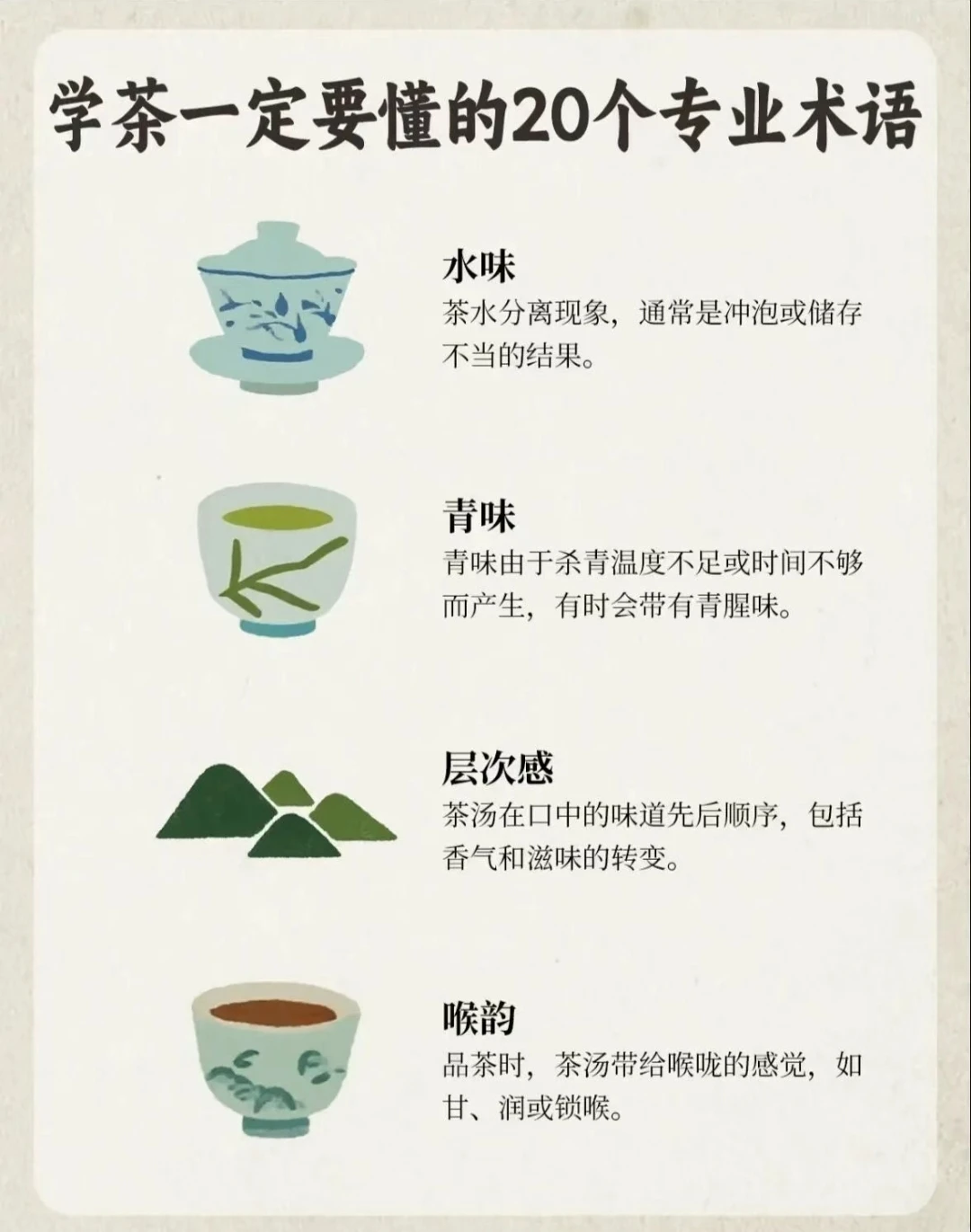 茶文化博大精深,品茶也有专业讲究,别再只说“好喝”“难喝”啦!这20个术语收藏好,下次品茶更专业。