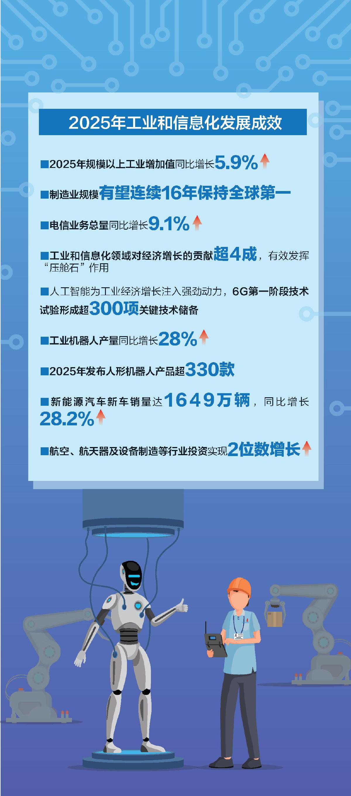 “2025年,面对国内外形势深刻复杂变化,工业经济顶压前行、向新向优发展,实现质的有效提升和量的合理增长,全年主要目标任务顺利完成。”1月21日,工业和信息化部副部长张云明在国新办新闻发布会上介绍了2025年工业和信息化发展成效。按照工信部部署,2026年将推进“人工智能+制造”专项行动,培育一批重点行业智能体、智能原生企业;强化重要数据和核心数据识别与保护等。