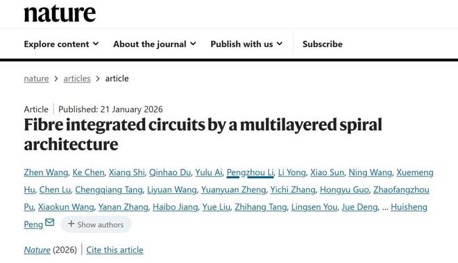 展望未来,团队希望进一步加强跨学科协作与产业合作,通过材料与工艺的优化,提升芯片良率和集成度,推动“纤维芯片”在更多领域实现高质量应用。“长远来看,我们希望有一天,基于‘纤维芯片’的电子织物,能像手机、电脑一样进行高效的信息交互。”陈培宁说。