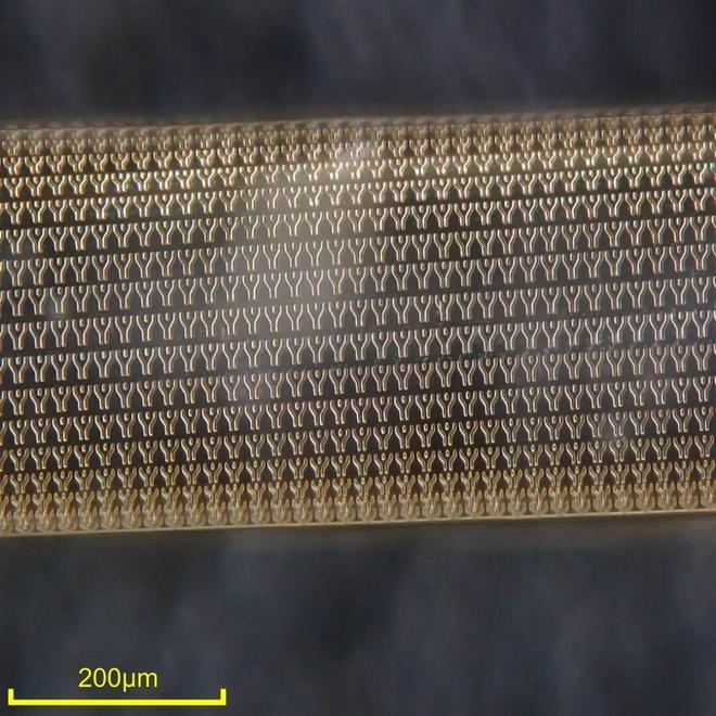 成卷“纤维芯片”和局部细节照片