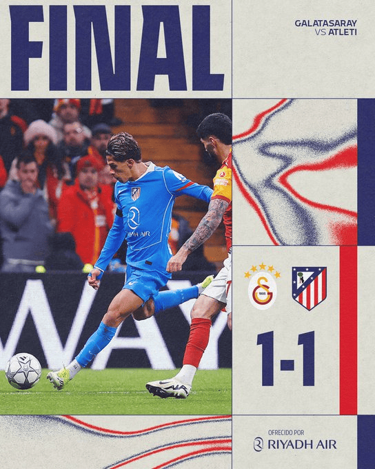 虎扑01月21日讯欧冠联赛阶段第7轮,加拉塔萨雷主场1-1战平马竞。