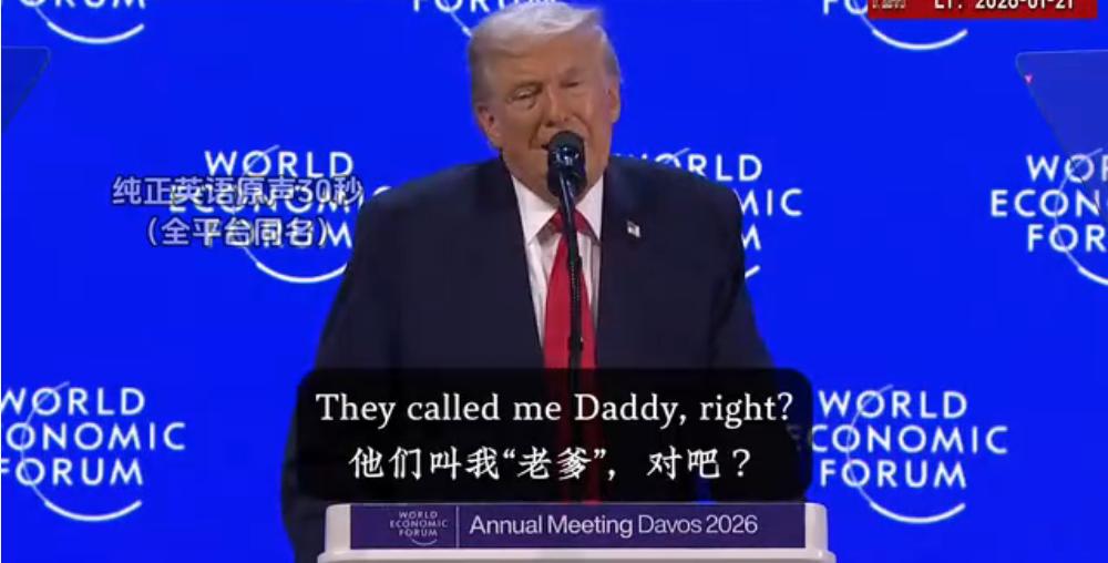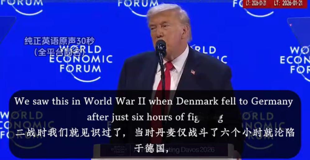 特朗普在达沃斯语出惊人:直到几天前,在我提出要格陵兰岛之前,他们还很爱我叫我“爸爸”。 这是特朗普当地时间21日,在瑞士达沃斯论坛上演讲时讲出的话,我还真想知道此前欧洲是谁这么恶心的称呼他,只不过特朗普没指明。 为了得到格陵兰岛特朗普甚至把二战德国占领丹麦搬出来羞辱丹麦,称丹麦仅仅战斗了六个小时就沦陷了,以此证明丹麦没有能力保卫格陵兰岛,只有美国能保卫它不落入俄罗斯之手,美国也是迫不得已。并吞别人国土,还一副很无奈委屈的样子。[捂脸]