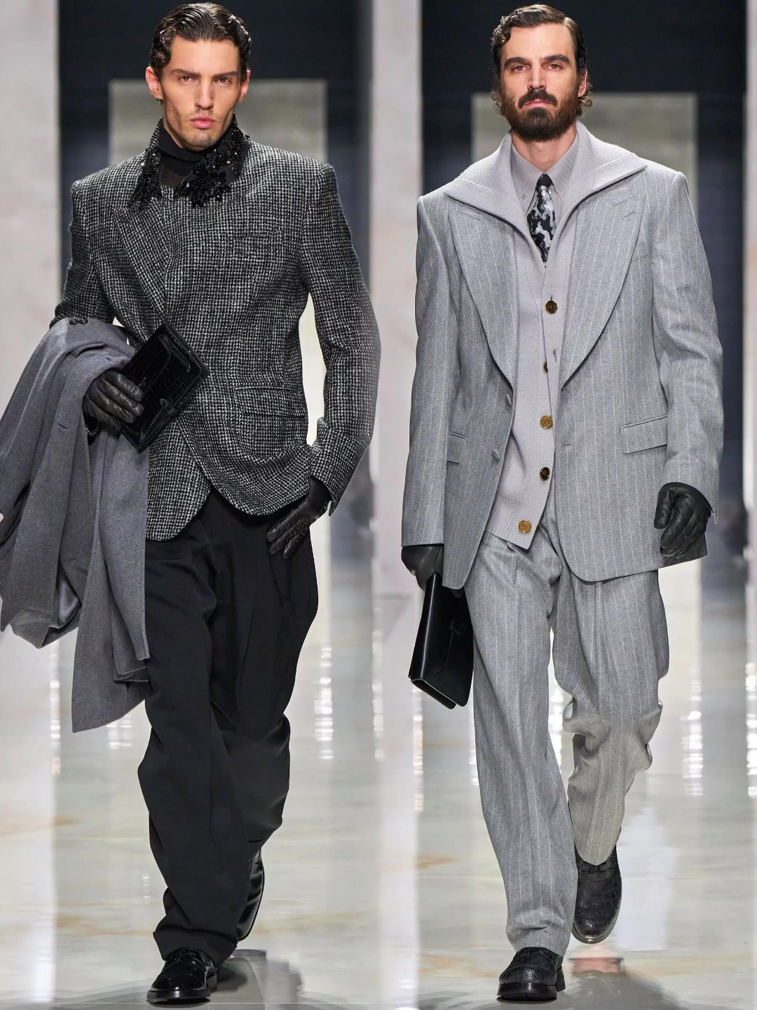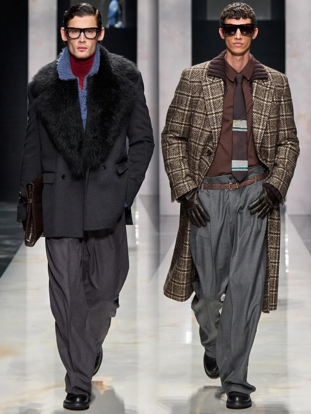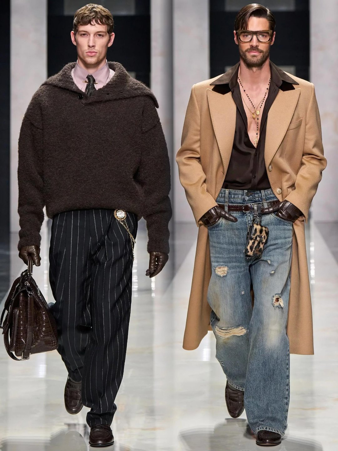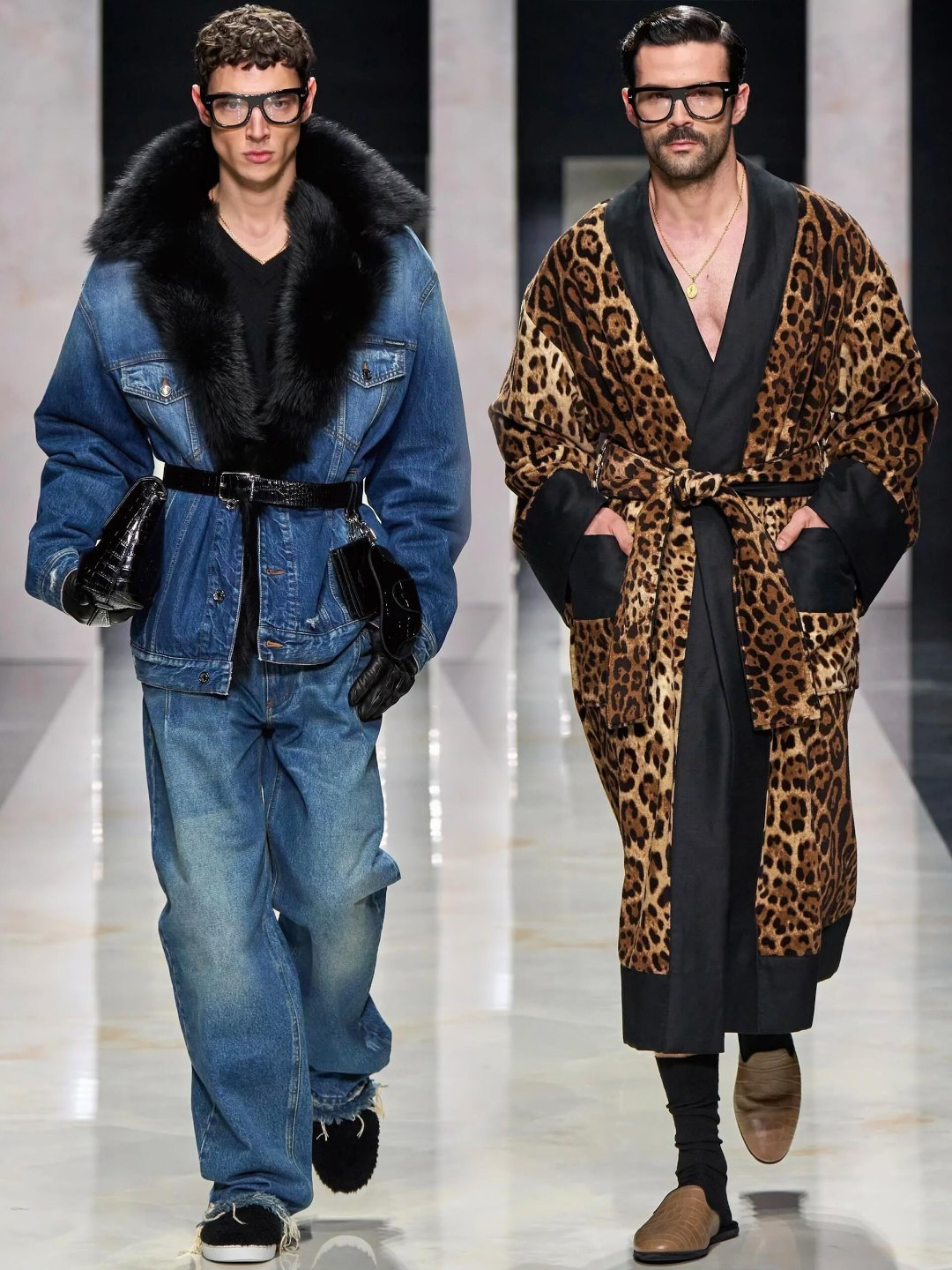 男装周米兰男装周大秀直击 杜嘉班纳2026秋冬男装秀以《男性肖像》为题,用扎实的剪裁功底和意式美学,彻底打破了对男性气质的刻板定义。秀场上没有晦涩概念,而是聚焦“歌颂个体性”:利落正装混搭巧思细节,鼓励穿着者按自身审美拆解、叠穿、重组,从沉思学者到地中海型男,每个形象都鲜活独立。支撑这份底气的,是品牌老派而精湛的剪裁——仿皮草风衣气场全开,花白羊毛西装肩部挺括又灵动,双排扣大衣与慵懒高腰裤的搭配,让复古与松弛感完美平衡。设计师直言“当下社会充斥同质化”,他们想放大每个男性的故事与特质,用“有多少种男人,就有多少种可能性”的 杜嘉班纳2026秋冬男装秀杜嘉班纳2026秋冬男装秀以《男性肖像》为题,用扎实的剪裁功底和意式美学,彻底打破了对男性气质的刻板定义。秀场上没有晦涩概念,而是聚焦“歌颂个体性”:利落正装混搭巧思细节,鼓励穿着者按自身审美拆解、叠穿、重组,从沉思学者到地中海型男,每个形象都鲜活独立。
