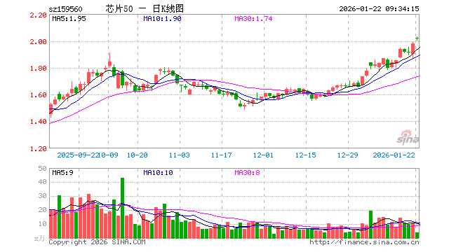 1月22日,芯片ETF景顺(159560)开盘涨2.22%,报2.022元。芯片ETF景顺(159560)重仓股方面,中芯国际开盘涨1.41%,寒武纪跌0.73%,海光信息涨4.82%,北方华创涨1.14%,澜起科技涨8.03%,兆易创新涨4.01%,中微公司涨1.18%,豪威集团涨0.67%,芯原股份涨0.65%,长电科技涨3.76%。