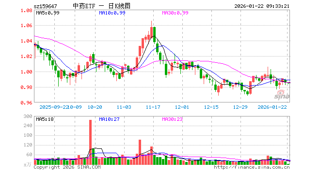 1月22日,中药ETF(159647)开盘涨0.00%,报0.985元。中药ETF(159647)重仓股方面,云南白药开盘涨0.11%,片仔癀涨0.00%,同仁堂跌0.03%,东阿阿胶涨0.20%,华润三九涨0.00%,吉林敖东涨0.29%,白云山涨0.00%,以岭药业涨0.17%,达仁堂涨0.00%,众生药业涨0.05%。
