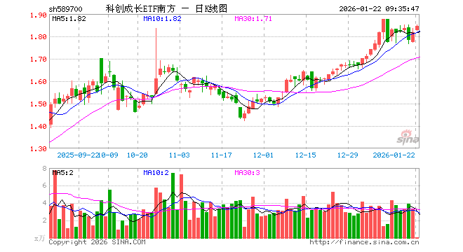 科创成长ETF南方(589700)业绩比较基准为上证科创板成长指数收益率,管理人为南方基金管理股份有限公司,基金经理为杨恺宁,成立(2025-05-21)以来回报为81.98%,近一个月回报为14.72%。