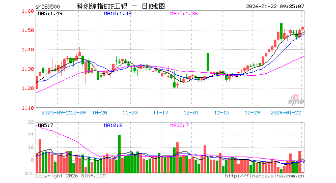 科创综指ETF工银(589500)业绩比较基准为上证科创板综合价格指数收益率,管理人为工银瑞信基金管理有限公司,基金经理为史宝珖,成立(2025-02-24)以来回报为49.51%,近一个月回报为18.37%。