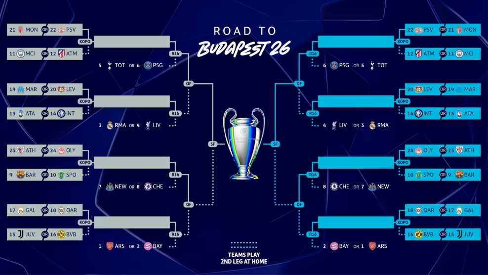 在附加赛中获胜的八支俱乐部将晋级16强,16强抽签将于2026年2月27日星期五举行。