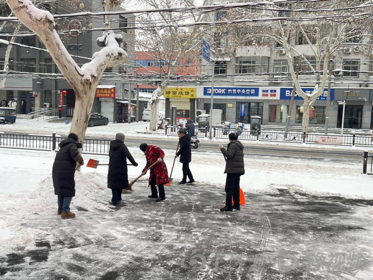 1月20日,河南温县遭遇强降雪,城区积雪覆盖路面、冻结台阶。为保障出行安全畅通,温县医保局迅速启动应急响应,开展院内及门前扫雪除冰行动,以实际行动诠释医保为民初心。