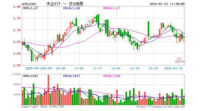 1月22日,截止午间收盘,央企ETF(510060)跌0.19%,报2.655元,成交额69.16万元。央企ETF(510060)重仓股方面,招商银行截止午盘跌0.94%,长江电力跌0.71%,中信证券跌0.18%,中芯国际跌1.24%,交通银行跌0.30%,农业银行跌2.16%,京沪高铁涨0.20%,中国船舶涨1.62%,中国银行跌0.38%,中国神华涨1.17%。