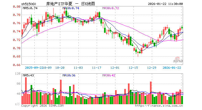 1月22日,截止午间收盘,房地产ETF华夏(515060)涨0.00%,报0.747元,成交额2285.70万元。房地产ETF华夏(515060)重仓股方面,保利发展截止午盘跌0.46%,万科A跌1.60%,张江高科跌2.04%,招商蛇口涨2.25%,海南机场涨0.00%,衢州发展跌0.25%,滨江集团涨2.13%,新城控股涨3.06%,万业企业跌4.24%,万通发展涨2.33%。