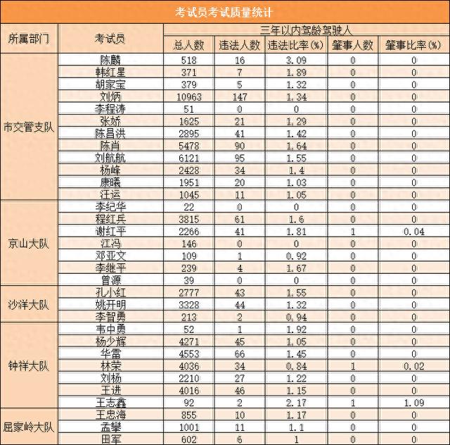 关于2025年12月考试员考试质量及三年内驾龄驾驶人交通违法率和交通肇事率的通告