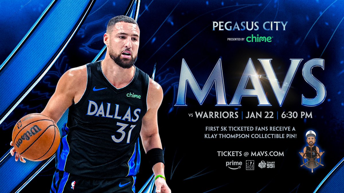 独行侠官方推特报道,明日晚上在美国航空中心球馆迎战金州勇士队!前5000名球迷将获得克莱·汤普森纪念徽章‼获取金色徽章即可赢得戴夫与巴斯特餐厅250美元礼品卡✨//#MFFL