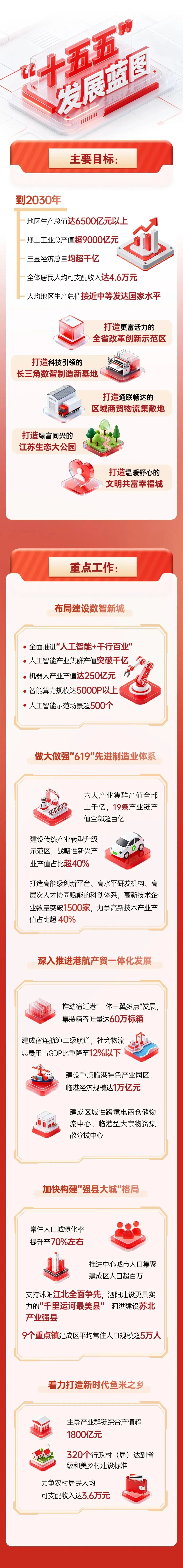 编者按:时序更替,华章日新。随着省两会脚步临近,全省各地两会正相继召开。在此节点,“微讯江苏”联动13个设区市官方发布平台,特别推出“晒答卷话开局——1+13省市政府工作报告联动发布”系列,生动呈现全省各地奋力扛起“经济大省挑大梁”的光荣使命,奋力谱写“强富美高”新江苏现代化建设新篇章,奋力在推进中国式现代化中走在前、做示范的壮丽图景。让我们透过这些图解触摸发展脉动,从“答卷”中汲取信心,于“开局”里明确方向,共同见证江苏高质量发展的铿锵步伐。