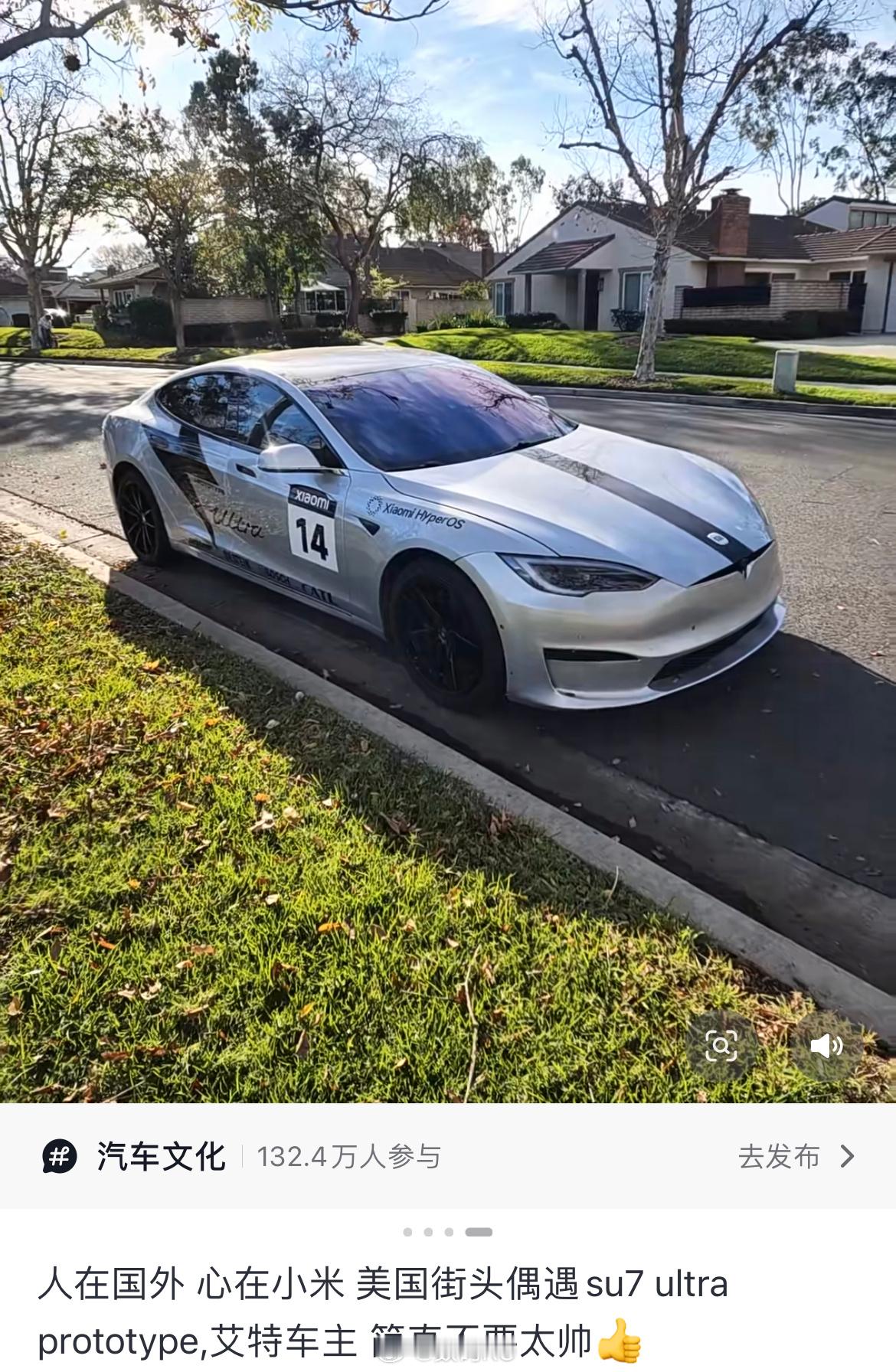 美国的一辆特斯拉Model S被车主贴上小米的元素,乍眼一看还以为小米su7Ul