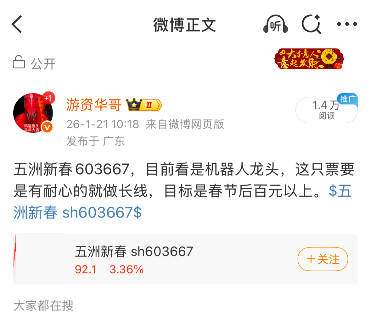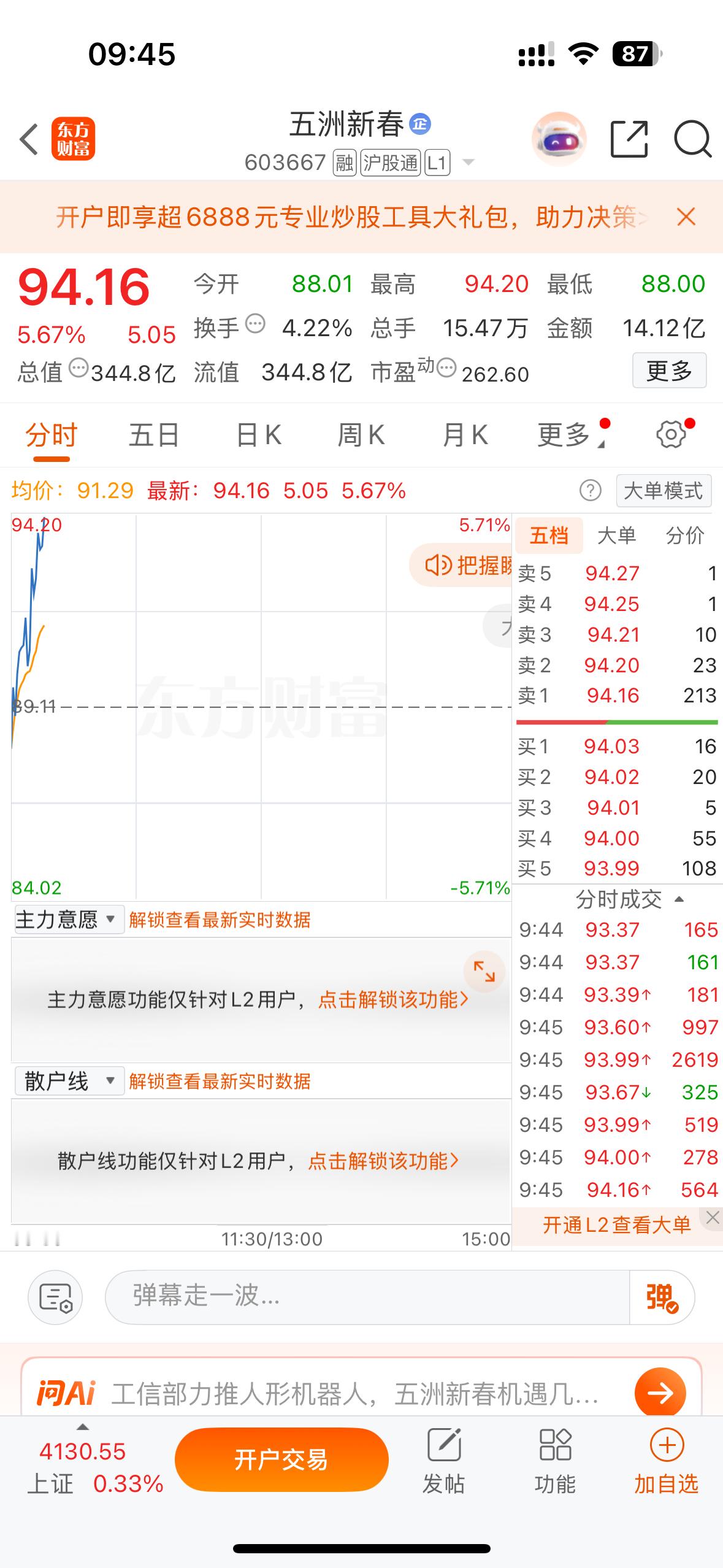 五洲新春603667,今天强势拉升5个多点,昨天说了这只票能上百元,有多少人跟上