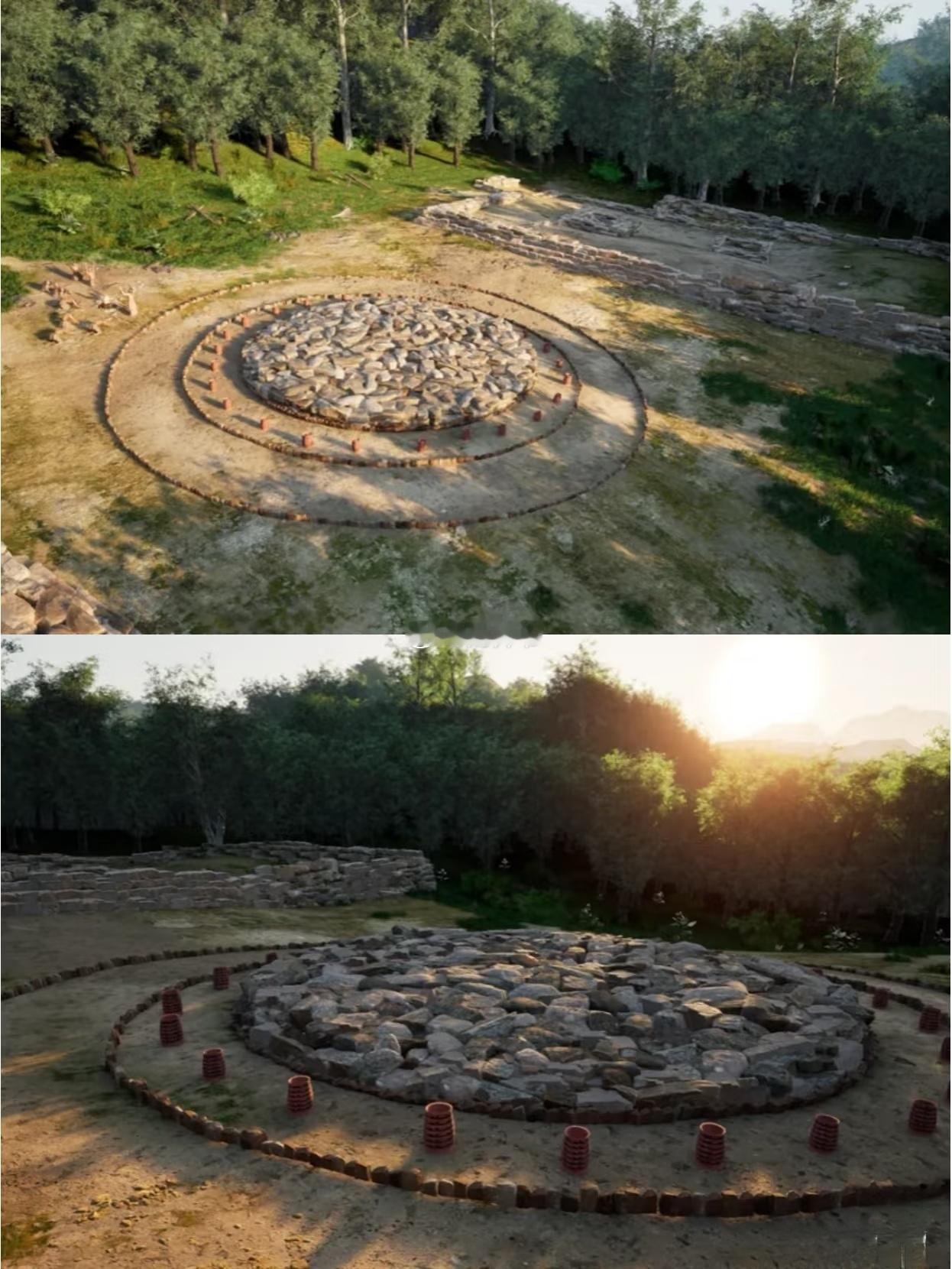 【神秘的辽宁红山遗址】红山遗址又称“牛河梁遗址”,该遗址的发掘始于发现了一座史前女神庙(图1),从出土的女神像(图2)中,考古学家猜测该庙是祭祀女娲所设。同时周边还出土了一些女神像的残片,胳膊残片空洞中测得人骨灰,其他还出土了一些造型奇特的玉像、石像。更离奇的是,牛河梁遗址还发现了多处金字塔状的祭祀台,布局竟类似于埃及金字塔。这处大型遗址,虽然过了42年,目前还是在发掘阶段。