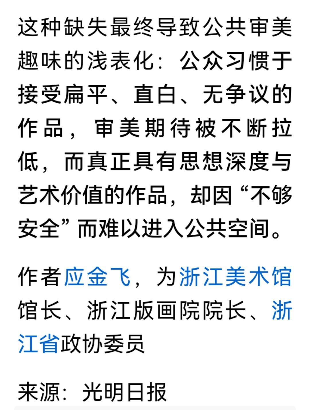 艺术馆长:观众动不动投诉,公共艺术还怎么干? 这个质问竟然在某日报发表了,作为美术馆馆长,画院院长发的文应该有权威性,有什么独到见解,结果整个观点让人觉得是幼稚的洗白! 下面根据他的疑问,谈谈看法: 问:艺术作品应该怎么做? 艺术为什么人的问题,是一个根本问题,原则问题,中国的文艺是为中华民族的最大部分,为最广大的人民大众服务的,前有为人民服务,现有人民性。 问:公共艺术形成了强制性观看的审美场域? 说实话,艺术家负责任,用艺术为民提精气神,根本不用强制性,那些歪门邪道的艺术才有强制性,不过老百姓不认同你的艺术,艺术家没有资格用强制性,投诉是合情合理的。 问:艺术审美的素养性? 这种操作己司空见惯,不好再用素养来约束观众,观众看不懂,理解不了的艺术,那是脱离了人民艺术性的宗旨的垃圾艺术,不要用素养绑架,有素养的艺术家不会背离人民的审美而走邪道! 问:专家解读失语问题 别扯什么伪专家,真正的专家根本不可能评论,伪专家评论那还不是歪的。 问:公共艺术的评判权问题 公共艺术真正的评判权是人民大众! 问:公共艺术怎么干问题 只有为人民服务,具有人民性,坚定为振兴中华文化的精气神而创作,抛弃不服水土的、有伤风化的西方文化艺术! 问:人体艺术问题 人体艺术不应在大庭广众之下,不符合中国文化和道德标准,可以在自家院子里,房间里展现。 问:同质化问题 不要把乱七八糟的东西称艺术创新,更不要称作为破解同质化问题,中国几千万的艺术作品都有创新,唯有现代派以丑为美,把丑化当阴柔,实乃以西方文化破坏中国文化! 老老实实做人,正正规规创作,牢记人民才是真正的观众,振兴中华文化,提振精气神才是核心,违背就是背道而驰,遭到人民的唾弃! 这个图3外国人的画像是馆长的作品,请鉴别! 图2也是馆长的作品! 一目了然!