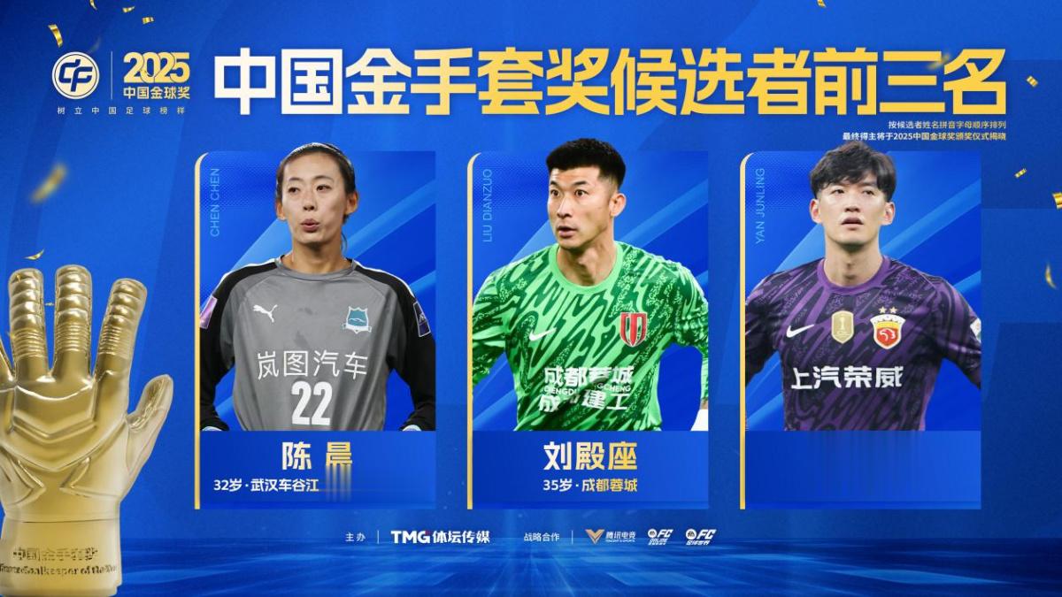 中国金手套奖评选继续记录各位本土门将的一夫当关:在亚冠淘汰赛和全运会多次统治点球大战的武汉车谷江大门将陈晨、在成都蓉城找回巅峰状态的刘殿座,以及力助上海海港再夺中超冠军的颜骏凌同时入围此次评选的前三名。值得一提的是,在U23亚洲杯奉上优异表现的小将李昊同样入围了2025中国金手套奖的候选名单,最终排名第5位。