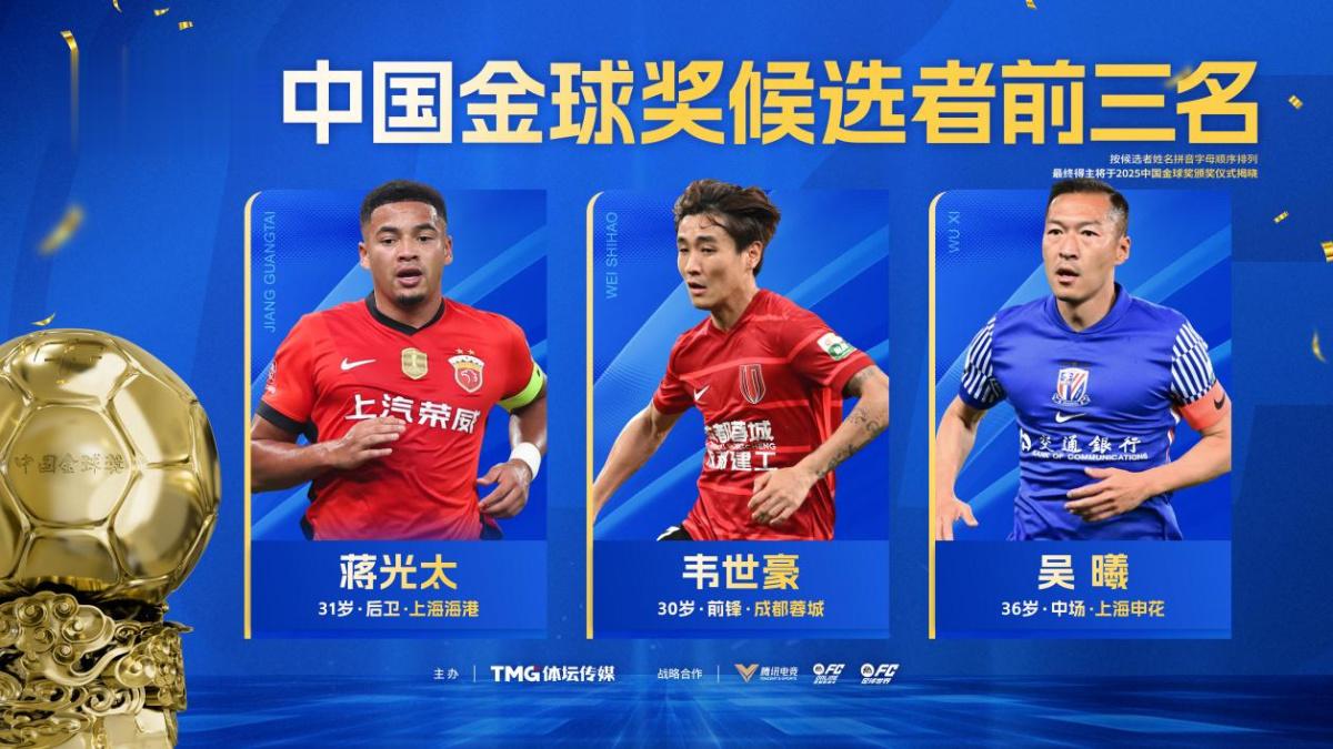 在2025中国金球奖的评选中,上赛季中超积分榜前三名俱乐部各有一人作为代表入围“前三”——他们是上海海港的蒋光太、上海申花的吴曦,以及刚与成都蓉城完成续约的韦世豪。作为奖项候选常客、深得评委们认可的韦世豪与吴曦曾同时入围2020中国金球奖评选的前三。而排名上一届中国金球奖评选第6名的蒋光太,则首次在评选中进入前三决选。