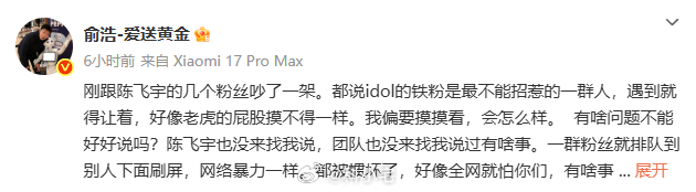 追觅科技俞浩怒怼自家代言人陈飞宇粉丝,干了所有老板想做但不敢做的事!
