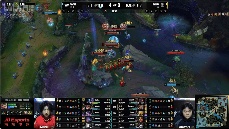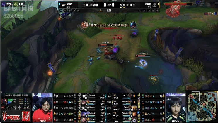 虎扑01月22日讯WE蓝色方,NIP红色方