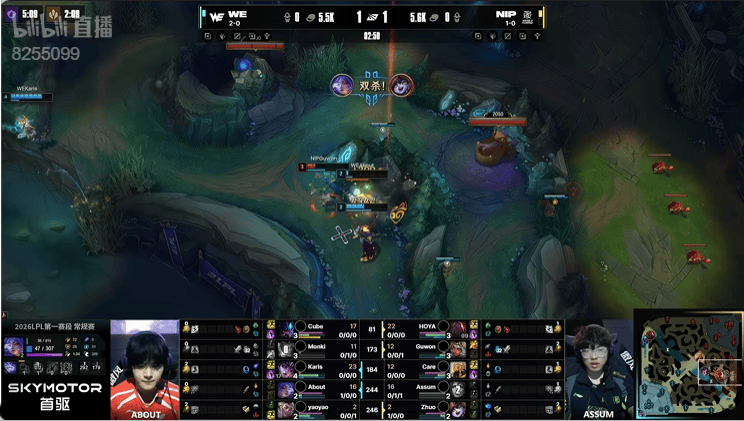 2分钟:WE下野辅入侵野区打出一换三,About芸阿娜拿到双杀