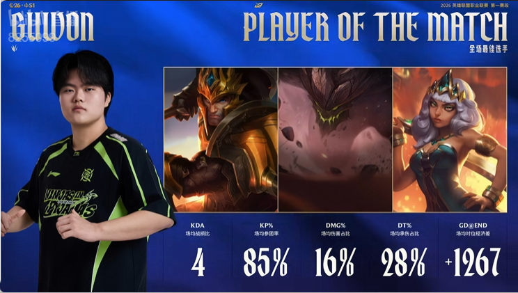 稳健发挥!Guwon拿到NIP对阵WE比赛的全场MVP