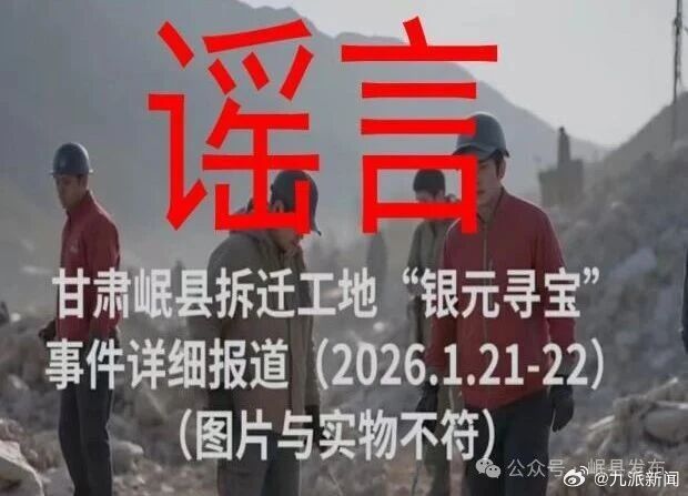 #甘肃一拆迁工地挖出银元系谣言#【#拆迁工地挖出银元系恶意拼接#】甘肃定西岷县岷阳镇人民政府1月22日发布:近日,有网民发布“岷县一拆迁工地挖出银元”等图文视频,并有部分自媒体用户为博取流量,恶意拼接展示挖出银元的视频图片,造成不明真相的群众盲目跟风并聚集挖掘。经我镇组织核查,证实为谣言虚假信息,并向公安机关报案,公安机关已对相关人员进行了约谈。网络空间不是法外之地,编造和传播网络谣言需承担相应法律责任。请广大网民自觉抵制谣言,做到不造谣、不信谣、不传谣,共同营造清朗网络环境。#甘肃岷县辟谣拆迁工地挖出银元#