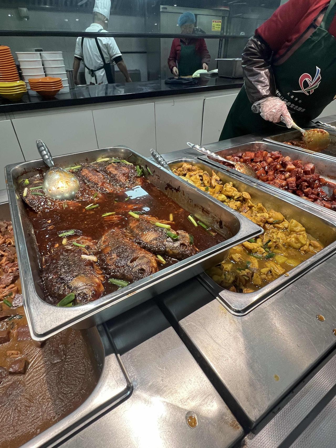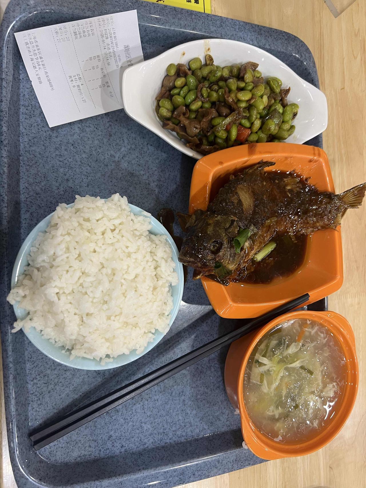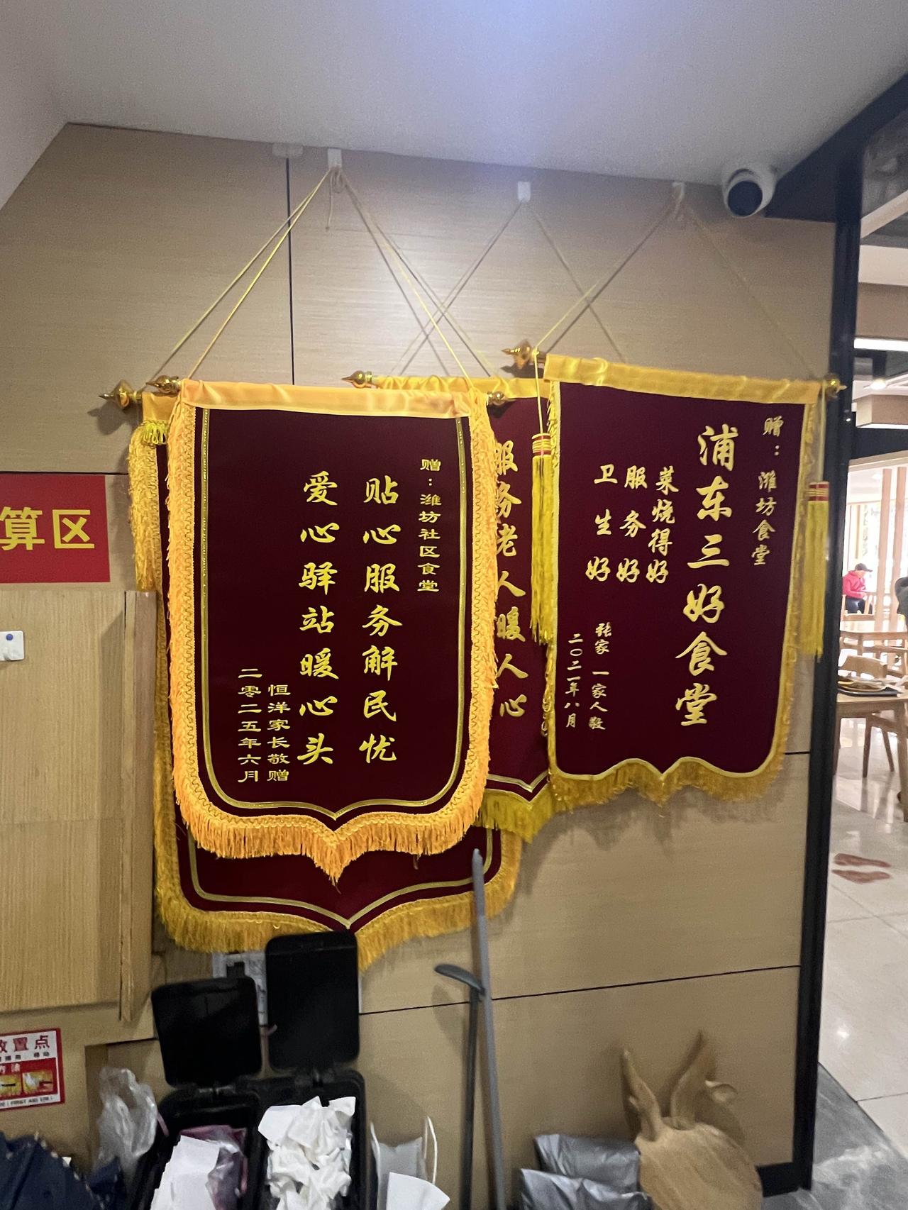 上海之前开了很多的社区食堂,但是能够坚持一直开下来的却不多,这家社区食算是时间比较长的一家。 进来看食堂面积还是不小的,还挂着不少获奖锦旗。中午午餐时有很多老人在慢慢的吃饭,当然也有不少周围打工工作的人。做好的菜有荤有素,放在各种不同颜色的盘子里温热着,颜色不同价格不同,荤菜都是15左右,素菜8块左右。 拿了一条鱼、一盘毛豆炒鸡胗、一碗汤和一碗饭,菜的份量足够,味道也还可以,但是鱼看着不错,吃起来却是凉的,这个要扣分,毕竟很多老人来这里吃饭,这种冷菜吃了会对老人肠胃不好。 这一顿中饭一共27块钱,价格的确不贵。要是年纪大的人或者一个人住在附近,懒得做饭的时候还是比较省事方便的,这也是社区食堂的意义吧。