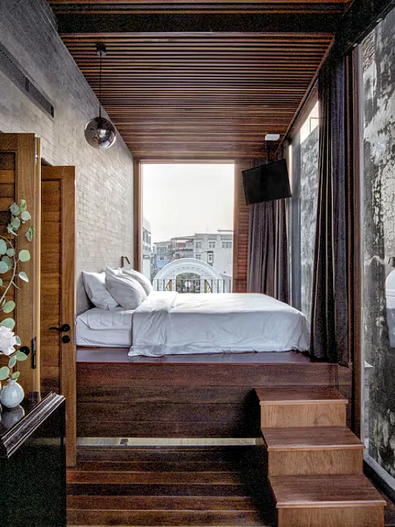 ▪️ 房间也装修的非常好看,配有大浴缸,床紧挨着窗户,可以欣赏到窗外街道风景
