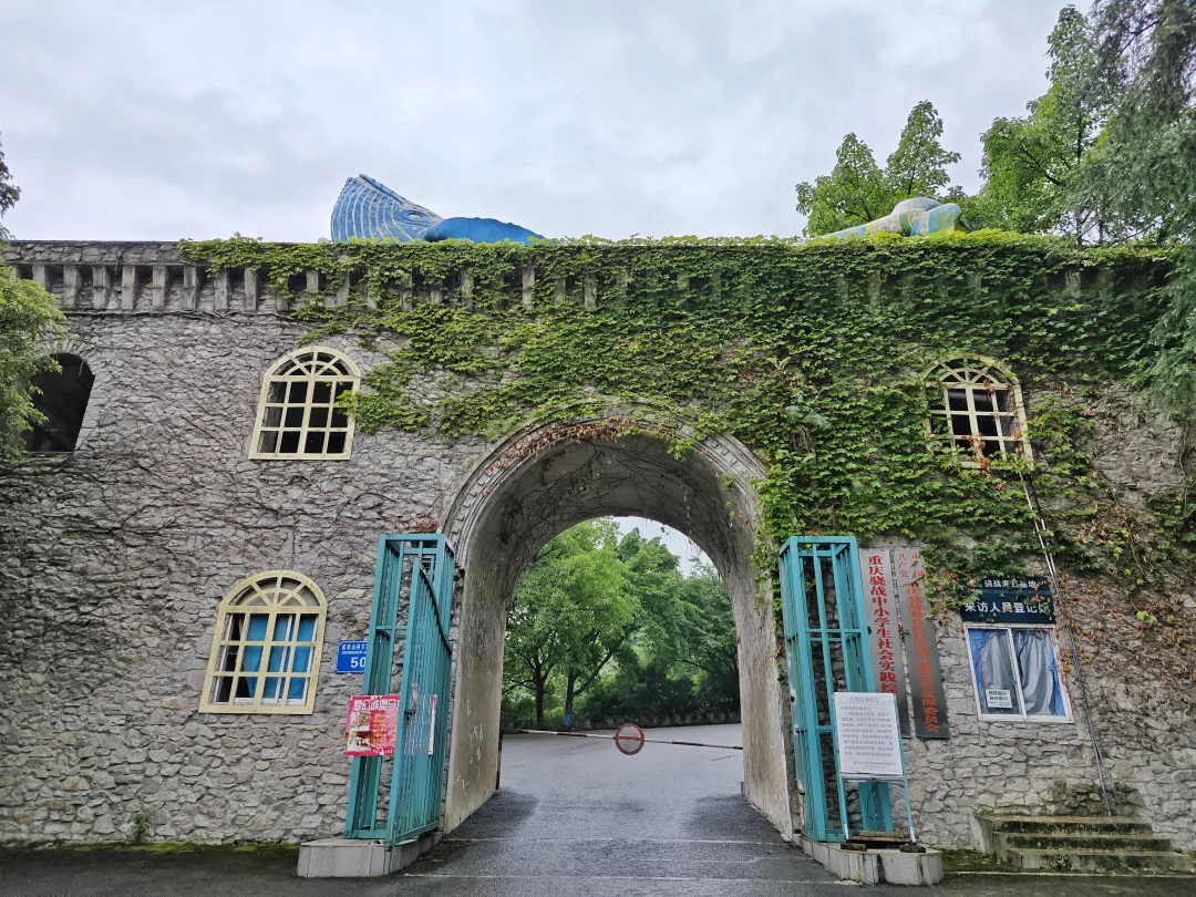 虽然中梁镇紧挨着双碑,照理说应该比较热闹,但实际上非常冷清。虽然有公交车直达且班次不少,但是去中梁镇的人很少。在双碑公交站坐296就可以直达中梁镇,路线就是去双碑千佛崖石刻那条上山的茅山峡公路,也要经过那个松鹤陵园,沿着上山公路,不到半小时就能到中梁镇。但到了镇上看到人真的不多,起码路上没啥人,和回龙坝相似,老年人居多。中梁镇工业更少,没有保税港的仓库,也没有什么大型工厂,主要有两个景区,一个是海石公园,一个是太寺垭森林公园。海石公园其实修得很有意思,有点像神秘版的华生园城堡公园,里面全是条石砌成的各种欧式城堡,造型古朴,外观很有历史感,很多城堡外墙上爬满了爬山虎,显得既有绿色又有神秘感。以前刷到好多次去海石公园拍照的帖子,拍出来颇有一种惊情四百年的古堡风。公园里面以前游客就很少,好像要门票20块,一直比较冷清。结果今年直接关闭了,门卫说是在改造升级,要作为国防教育活动基地还是什么。而太寺垭公园就更远了,挨着北碚龙凤桥街道,坐公交车也需要很久。从海石公园坐公交车,能够一路直达北碚老城轻轨站,沿途还要经过龙车寺,也是一个古寺,现在学华严寺七佛塔苑,在寺里修了三座塔,拿来放骨灰,也算是有效增收手段了。